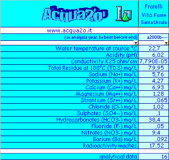 | Fratelli Vita, Fonte Santa Ursula (analysis 2000) | added 25-11-07 | ||||||||||||||||||||